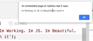 console.log('Im Working. Im JS. Im Beautiful. Im worth it');